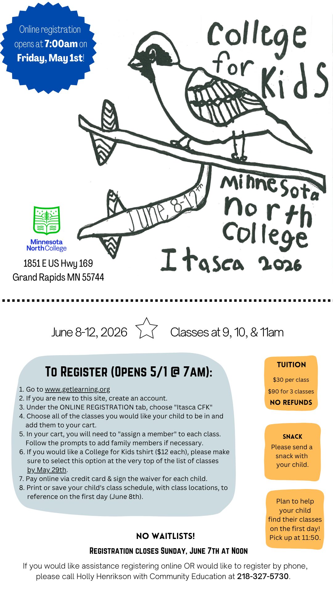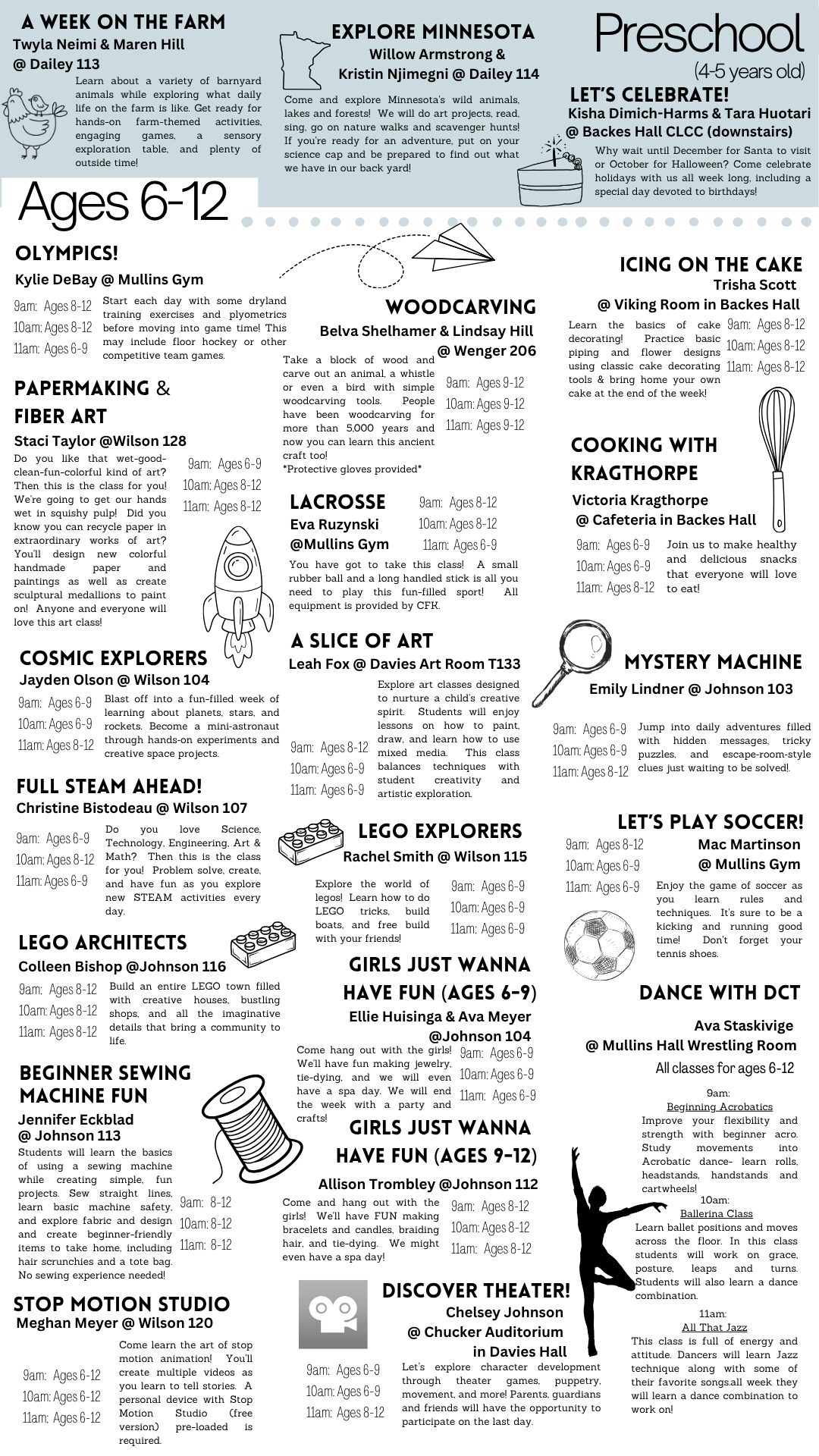 Join us on the Itasca campus for five days of fun! Students ages 4-12 have the opportunity to choose from a variety of enrichment classes. We have over 20 course offerings from LEGO, STEAM, sewing, cooking, cake decorating, painting, and outdoor games. Come explore, create, and try something new!